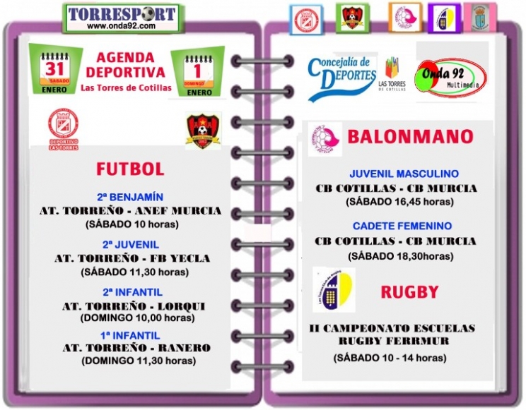 Agenda Deportiva en Las Torres de Cotillas del fin de semana del 31 de enero y 1 de febrero