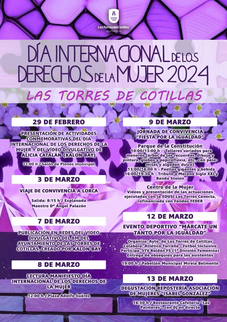 La Concejalía de Políticas Sociales de Las Torres de Cotillas ha presentado hoy jueves 29 de febrero el programa municipal de actividades conmemorativas del día internacional de los derechos de la mujer, en el que este año cuenta con una colaboradora de lujo: la influencer murciana Alicia Catalán, conocida en redes como Kalon Bay, que cuenta con más de medio millón de seguidores en Tik Tok.