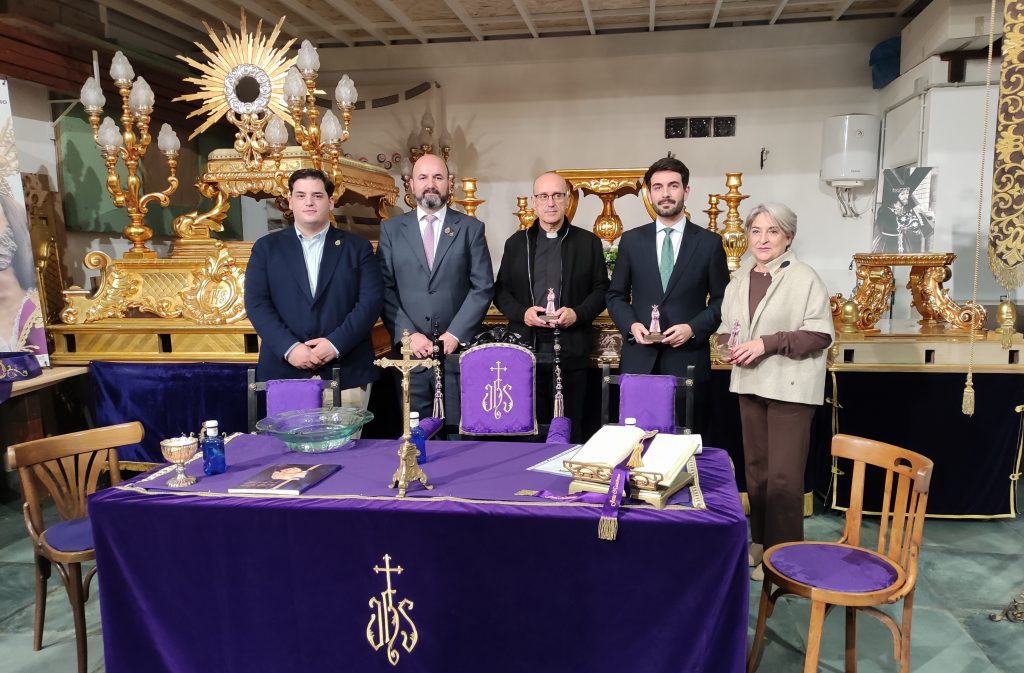 Para finalizar, el consiliario y párroco de la Iglesia de Nuestra Señora de la Salceda, Antonio Sánchez Martínez, ha procedido a la bendición del nuevo trono que portará al Nazareno la noche del Martes Santo. El párroco ha elogiado el trabajo de Hernández Vicente, comparando los detalles morfológicos hallados con una «huella de ADN» que otorga orgullo y personalidad a la cofradía.