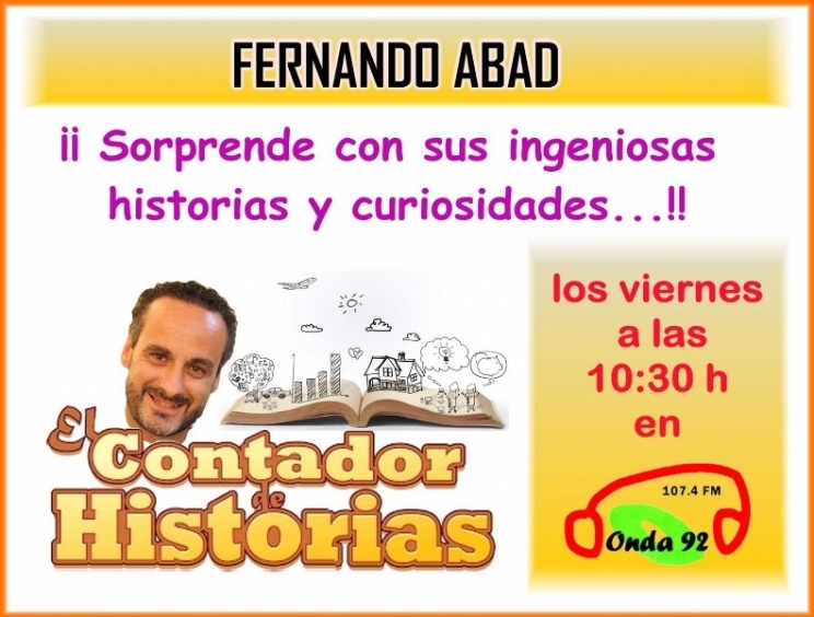El polifacético Fernando Abad, (actor, escritor, mago, publicista, presentador de TV, coach… ) nos deleitará todos los viernes a las 10:30 con sus divertidas historias sobre el origen de algunas frases o palabras muy conocidas de las que no sabemos su procedencia y que nos sorprenderá conocer quién y dónde se emplearon por primera vez en la historia.
