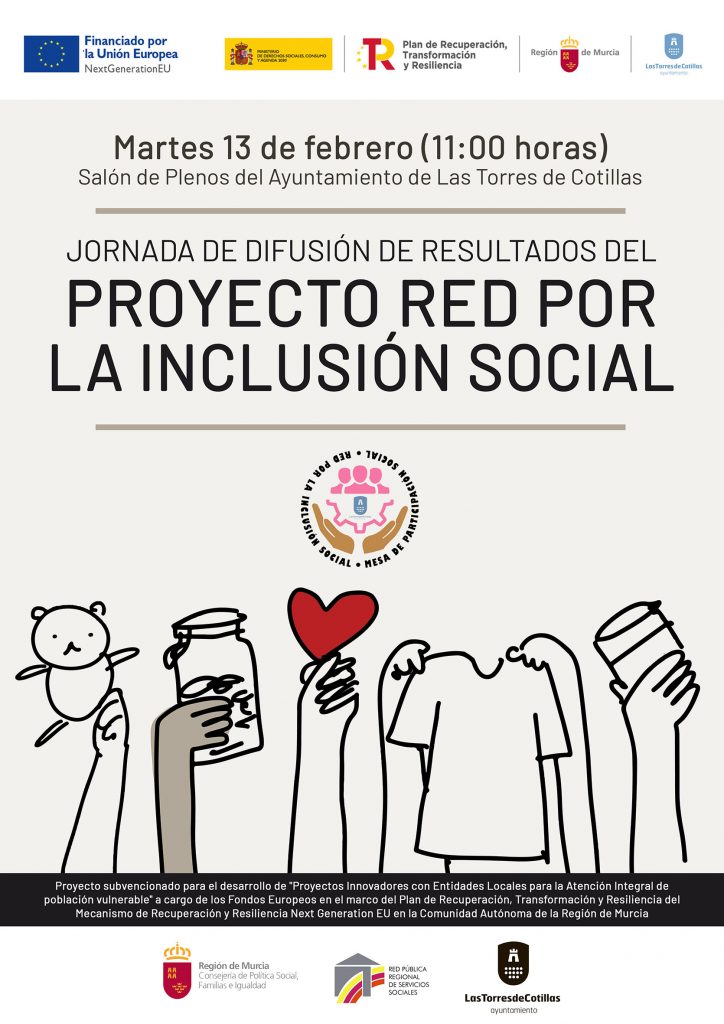 El pasado martes 13 de febrero se celebró en el salón de plenos municipal una jornada de difusión de resultados del proyecto Red por la Inclusión Social. Esta iniciativa, desarrollada por la Concejalía de Servicios Sociales y financiada con fondos Next Generation de la Unión Europea, busca crear una estructura para trabajar en equipo y de manera coordinada en red entre la administración local, asociaciones y ciudadanos.