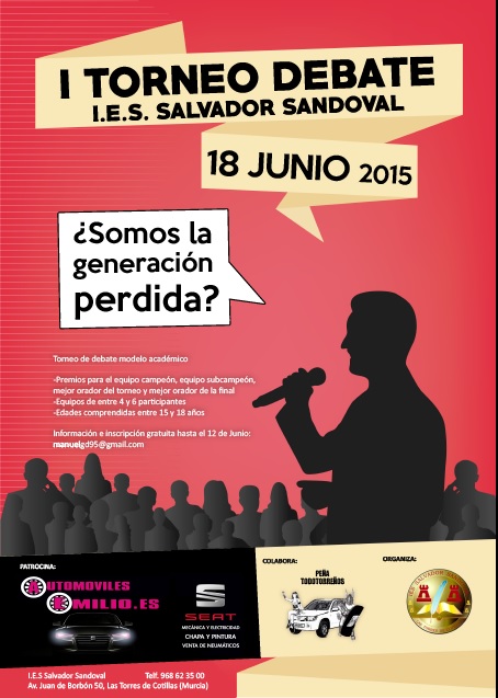 El I.E.S. Salvador Sandoval organiza su «I Torneo de Debate» con el afán de que el debate académico y la oratoria lleguen a nuestra región para quedarse. El necesario ejercicio de expresión oral y pensamiento crítico que supone son dos herramientas de enorme utilidad de cara no solo al futuro profesional de los actuales estudiantes, sino también para la construcción de nuestro carácter como ciudadanos. El debate es una herramienta para la vida. Con esta idea tratamos de impulsar este proyecto que está inspirado en el conocimiento y el respecto, la tolerancia y la inquietud intelectual. Estamos tratando de formar no solo futuros profesionales, sino personas.